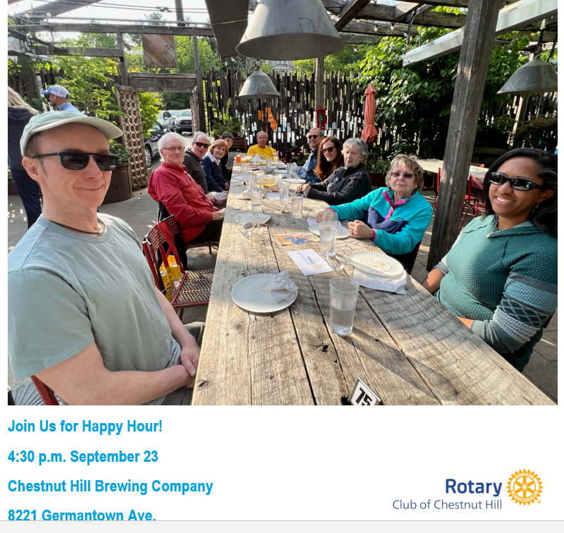 Informal gathering for drinks and light food at Chestnut Hill Brewing Company, 8221 Germantown Ave., Phila.