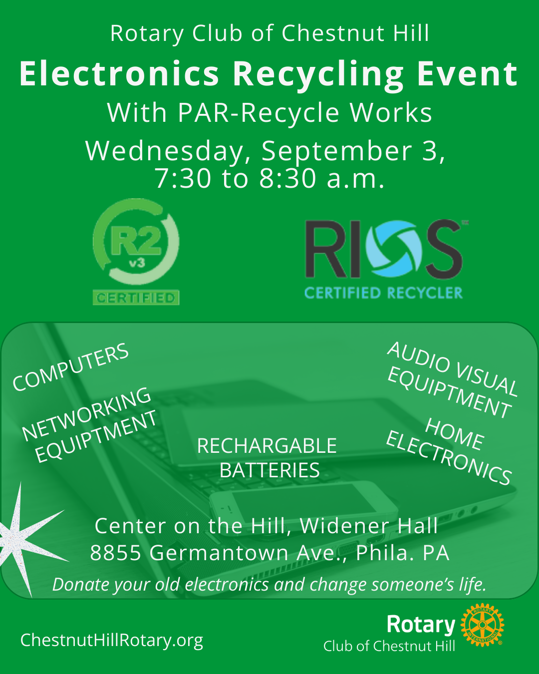 Email info@chestnuthillrotary.org for drop off locations.