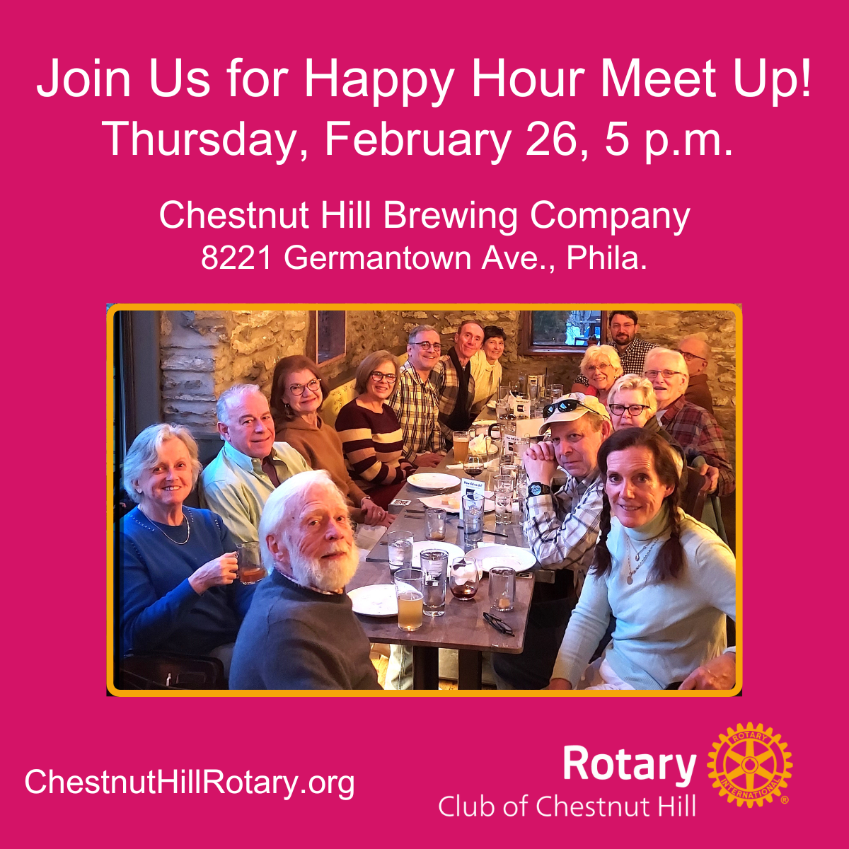8221 Germantown Ave. Chestnut Hill Rotary will also sponsor prizes for the Trivia winners. Everyone is welcome!
